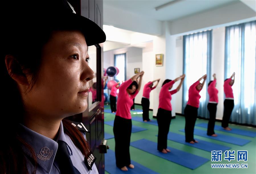 6月22日,河南省女子強制隔離戒毒所內的戒毒人員在瑜伽室內練習瑜伽。
