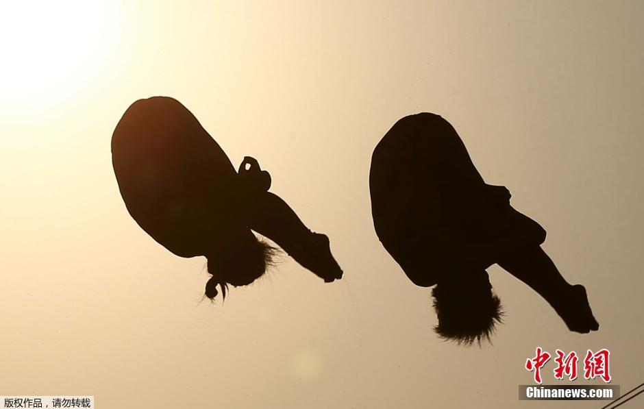 當(dāng)?shù)貢r間8月9日,2016里約奧運跳水女子雙人十米臺,中國選手陳若琳/劉惠瑕以354.00分獲得冠軍。圖為中國選手陳若琳/劉惠瑕在賽前熱身。