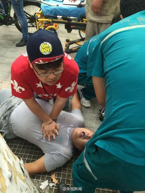 8月9日18點(diǎn)30分,鄭州人民醫(yī)院男護(hù)士李笑展在趕赴約會的路上,見路邊一50多歲的先生倒地,口唇發(fā)紫呼吸困難,他立即上前對其采取了胸外按壓急救措施;待急救車趕到,他協(xié)助救援,直到病人病情穩(wěn)定才離開。 央視記者 邱寶華 圖片來源:央視新聞微博