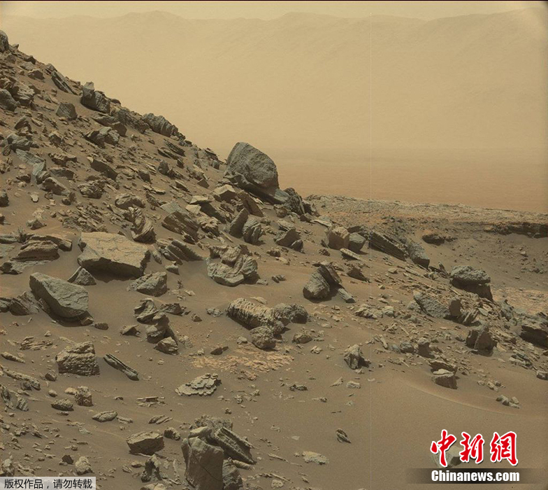 根據(jù)無人探測(cè)器“好奇號(hào)”在火星“莫瑞孤峰群(Murray Buttes)拍攝的新影像,除了遠(yuǎn)方的群山,當(dāng)?shù)剡€有丘陵、臺(tái)地,及巖壁,地貌與美國(guó)西南部的沙漠有些相似。