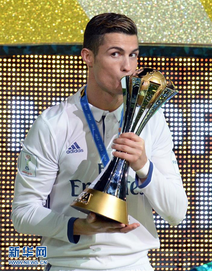 12月18日,皇家馬德里隊(duì)球員克里斯蒂亞諾·羅納爾多在本場(chǎng)比賽中上演“帽子戲法”,獲得世俱杯金球獎(jiǎng)。新華社記者馬平攝