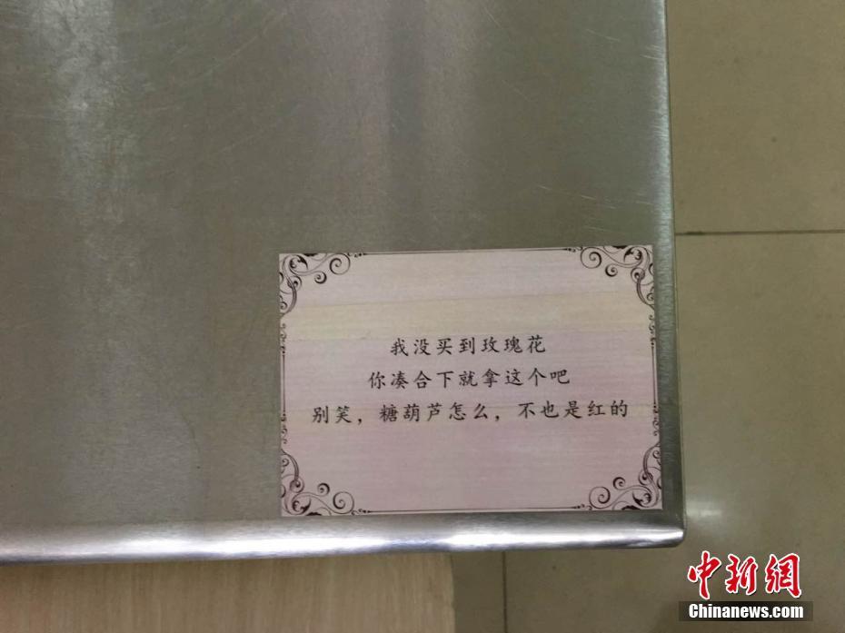 “這些情詩(shī)是開學(xué)前貼上的,剛開始只是想讓餐廳更個(gè)性化一點(diǎn)?!钡聦氹拚f,很多人覺得食堂就是個(gè)做大鍋菜的地方,吃飽肚子就行?!拔蚁爰右稽c(diǎn)不一樣的元素,就發(fā)動(dòng)朋友收集和吃飯有關(guān)的三行情書。”燕武 阿琳娜 攝影報(bào)道