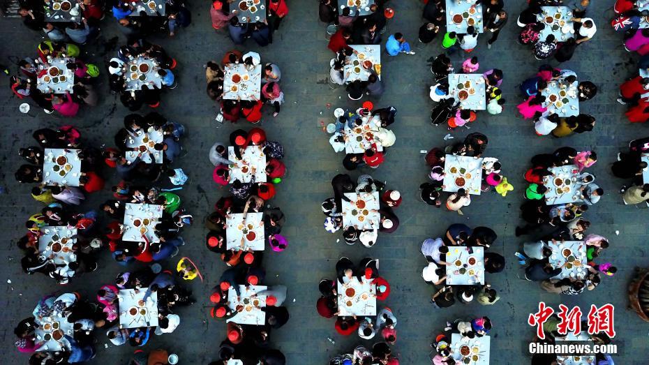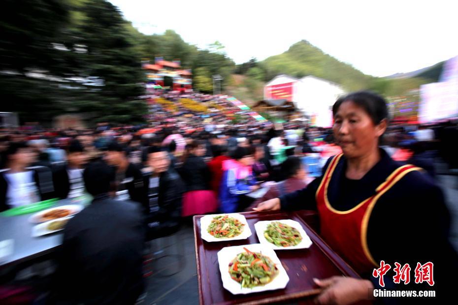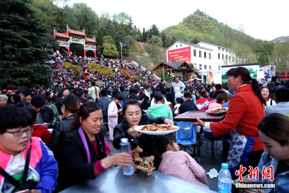 4月22日晚,河南欒川雞冠洞高山牡丹節(jié)開幕,特地舉辦千人牡丹宴,當(dāng)?shù)氐奶厣珯璐ǘ垢?、樹芽菜以及主菜牡丹燕菜紛紛上桌,吸引上千民眾品嘗,場面壯觀。 中新社記者 王中舉 攝
