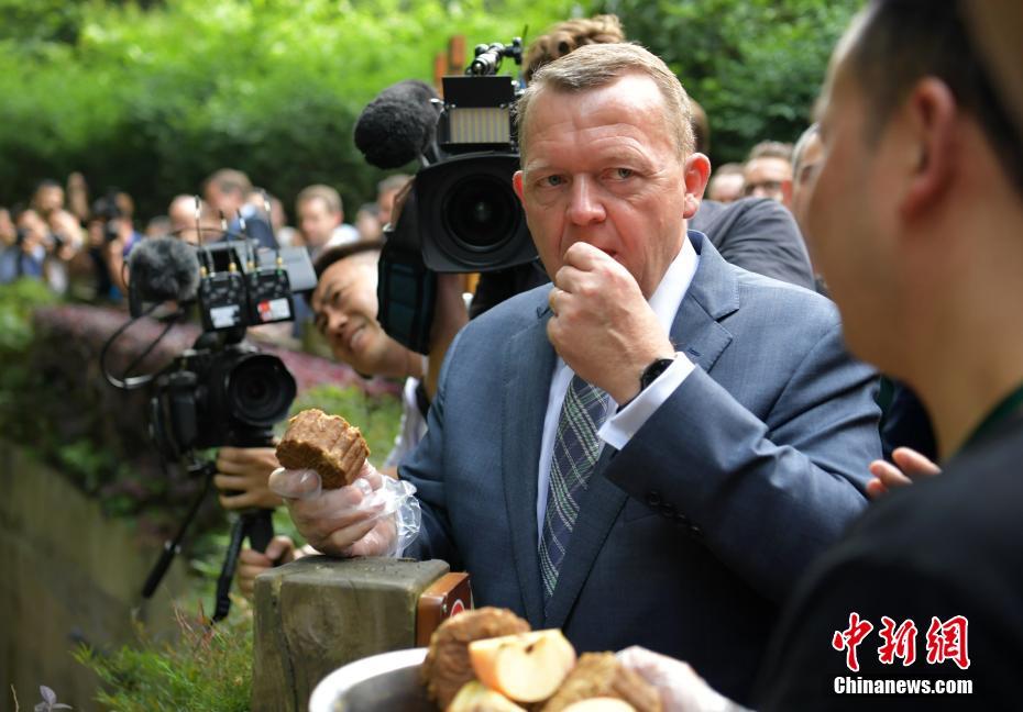 5月2日,丹麥?zhǔn)紫嗬鼓律瓉淼匠啥即笮茇埛庇芯炕乜创笮茇?,并“品嘗”熊貓窩窩頭。當(dāng)日,應(yīng)中國國務(wù)院總理李克強(qiáng)邀請,丹麥?zhǔn)紫嗬鼓律D行抵達(dá)中國成都,開始對中國進(jìn)行正式訪問,拉斯穆森此訪系其2015年當(dāng)選首相以來首次訪華,其訪問首站就來到四川成都。中新社記者 劉忠俊 攝