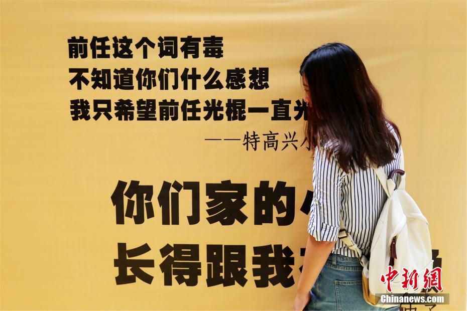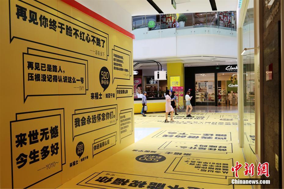5月18日,在浙江寧波某商場(chǎng)內(nèi),近百條“致前任”留言貼滿了墻壁和地面,引發(fā)不少市民駐留圍觀。據(jù)工作人員介紹,這些句子來(lái)自網(wǎng)絡(luò)征集,最終篩選了99名網(wǎng)友留言,希望在“520”這一網(wǎng)絡(luò)情人節(jié)中,引發(fā)人們對(duì)愛(ài)的共鳴。尤勤勇 攝