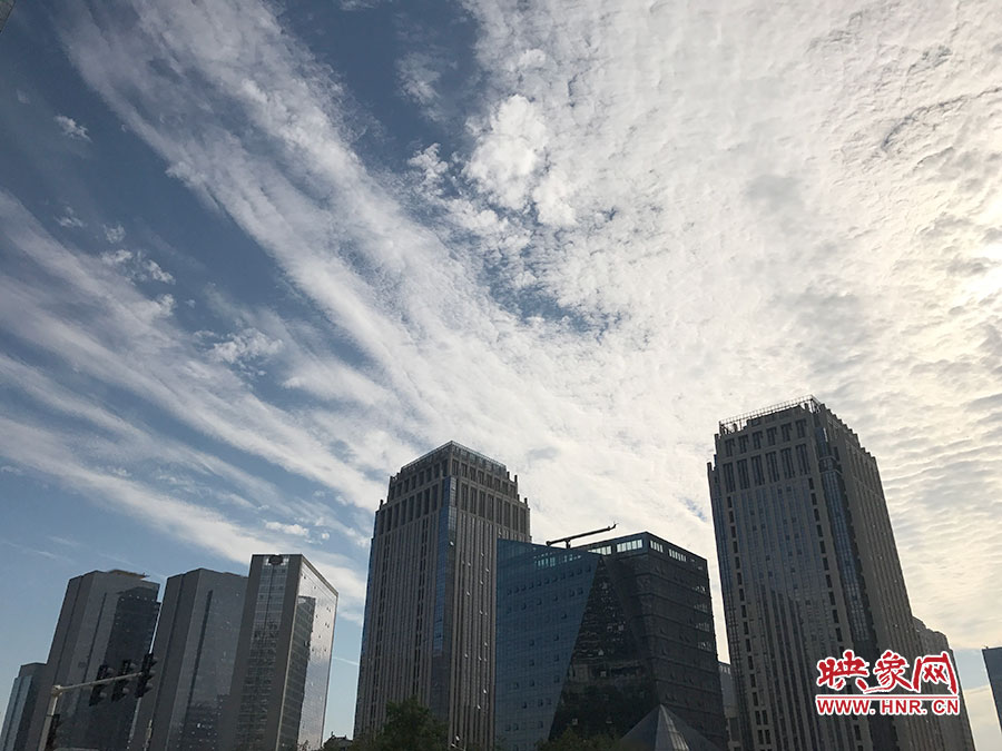 立秋大雨過后,8月8日清晨時(shí)分,鄭州上空出現(xiàn)美麗的魚鱗云,讓人沉醉,讓人興奮。抬頭45度,仰望天空,鬧市與清澈只有一顆心的距離……