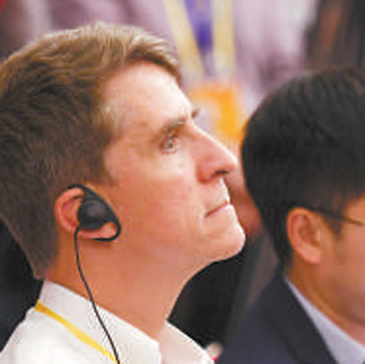外國(guó)記者在梅地亞中心認(rèn)真聽會(huì)。本報(bào)記者 雷 聲攝 |
