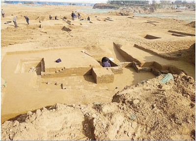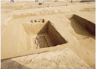 考古人員正在發(fā)掘古墓群