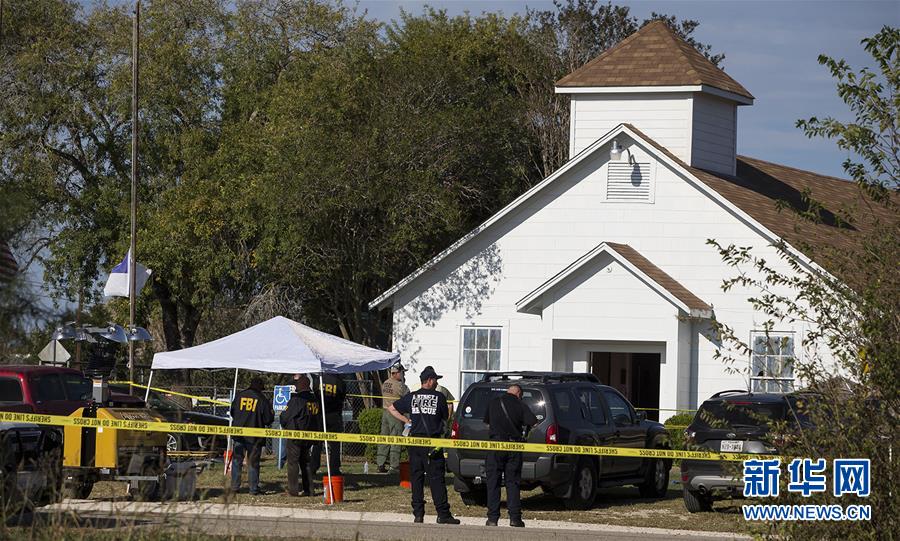 11月5日,在美國得克薩斯州南部薩瑟蘭斯普林斯鎮(zhèn),執(zhí)法人員在槍擊事件現(xiàn)場工作。美國得克薩斯州南部薩瑟蘭斯普林斯鎮(zhèn)一所教堂5日發(fā)生槍擊事件。警方向當?shù)孛襟w證實,槍擊至少造成27人死亡、多人受傷。 新華社/美聯(lián)