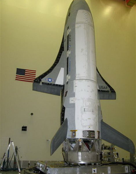X-37B無人航天飛機(jī)。X-37B長約8.8米,翼展約4.6米,起飛重量超過5噸。飛機(jī)減速離開太空,可能使用范登堡空軍基地長4600米、寬61米的跑道著陸。在軌道上,此航天飛機(jī)可以從事情報(bào)收集、發(fā)射小衛(wèi)星、測試太空設(shè)備等工作。