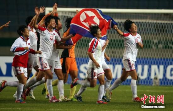 10月1日,在仁川亞運(yùn)會女足決賽中,朝鮮隊(duì)以3比1戰(zhàn)勝日本隊(duì)獲得冠軍。中新社記者 湯彥俊 攝