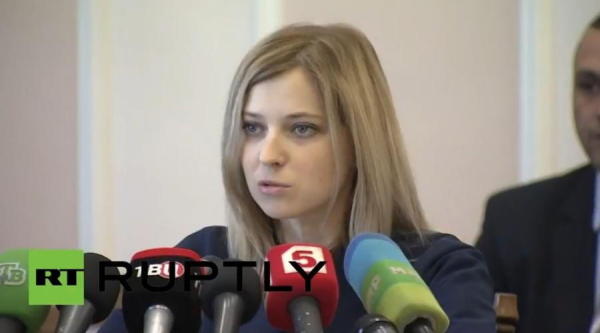 克里米亞議會(huì)3月11日表決任命納塔利婭·波科隆斯卡婭為檢察長(zhǎng)。此前她是辛菲羅波爾市總檢察院檢察員,支持克里米亞獨(dú)立,加入俄羅斯,稱(chēng)基輔新政權(quán)是魔鬼。這些都無(wú)關(guān)緊要,重要的是在波科隆斯卡婭接受任命后首次亮相的記者會(huì)上,世界許多國(guó)家的觀眾都被她的容貌所吸引。而且隨即引起了網(wǎng)民們對(duì)于她的各種惡搞。