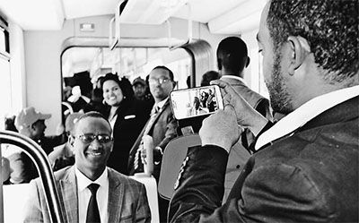 儀式結(jié)束后,海爾馬里亞姆率領(lǐng)1200名埃塞政府官員、社會名流、學(xué)生等試乘了輕軌列車。他們表示,輕軌的便捷、舒適是一種前所未有的體驗,這種體驗令人終生難忘,衷心感謝中國的建設(shè)者們。試乘結(jié)束后,埃塞小朋友興高采烈地圍著中國工程技術(shù)人員,豎起大拇指高聲喊道:“你好,你好!”