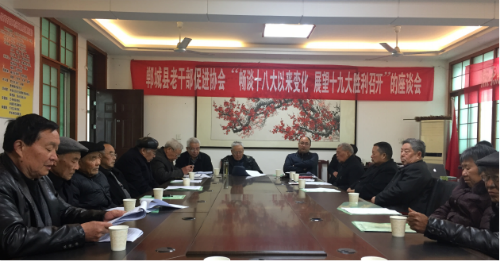 2017年,老干部促進(jìn)協(xié)會(huì)決定通過(guò)采取座談訪談、調(diào)研建言、網(wǎng)評(píng)熱議、參觀考察、家風(fēng)傳承、文藝創(chuàng)作、典型宣講、節(jié)慶活動(dòng)等形式,在全市廣大離退休干部中開(kāi)展“暢談十八大以來(lái)變化,展望十九大勝利召開(kāi)”的活動(dòng),積極推進(jìn)“不忘初心葆本色·中原出彩我點(diǎn)贊”活動(dòng)。鄲城縣老同志們?cè)谒枷胝谓ㄔO(shè)、輿論宣傳領(lǐng)導(dǎo)、優(yōu)良傳統(tǒng)傳承、社會(huì)風(fēng)氣凈化等方面積極發(fā)聲,積聚正能量、傳遞正能量,充分表達(dá)對(duì)堅(jiān)持黨的領(lǐng)導(dǎo)和走中國(guó)特色社會(huì)主義道路的堅(jiān)定信心,充分展示他們不忘革命初心、永葆政治本色的可貴品質(zhì),充分釋放他們對(duì)黨無(wú)限忠誠(chéng)的深厚感情,積極為黨的事業(yè)發(fā)展點(diǎn)贊加油,為十九大勝利召開(kāi)營(yíng)造良好氛圍。