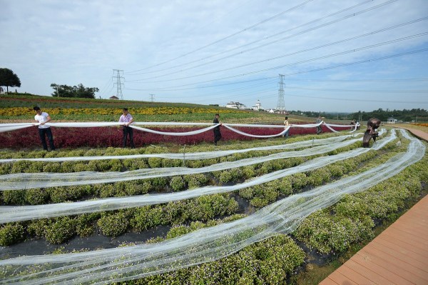 9月24日,為了迎接國慶大假,工作人員在成都一景點內擺放一款4100米長的婚紗,該婚紗的拖尾用單層網(wǎng)紗制作而成,寬度1.5米,耗時一個月,大約花費4萬元。成都商報/東方IC
