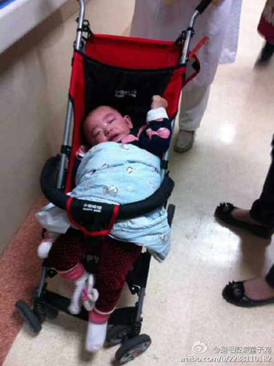 上海市中西醫(yī)結(jié)合醫(yī)院兒科主任沈朝斌介紹,從入院體檢來看,女嬰表現(xiàn)出生長發(fā)育功能的障礙。女嬰已16個月大,但不能獨立坐住,也無法扶墻直立。從女嬰四肢的活動、肌張力的改變以及她動作發(fā)育的遲緩,綜合判斷考慮可以診斷為腦性癱瘓,而且是遲緩性癱瘓。女嬰今后的生活自理能力較差,但可以通過長期的康復訓練來改善其生長發(fā)育和肌體功能。