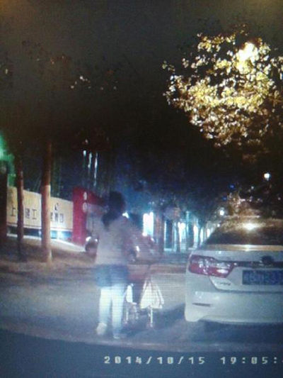 當晚7點左右,童先生在市一醫(yī)院門口停車等待妻兒,一名推著童車的婦女的舉動引起童先生注意。
