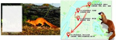 居住在鼓樓區(qū)煤炭港附近的知情居民武先生也是一名動物攝影愛好者,據(jù)他多年的攝影經(jīng)驗和追蹤觀察,總結勾畫出黃鼠狼在南京城北的一張“覓食行蹤圖”,2011年黃鼠狼出沒在下關多倫路一帶的居民區(qū),那里居住密集,也“養(yǎng)肥”了不少老鼠,它們成了黃鼠狼的美餐,據(jù)他觀察,每只黃鼠狼一夜間可捕食6只老鼠。2012年,多倫路一帶開始動遷,黃鼠狼們轉戰(zhàn)方家營,仍以老鼠為主食。之后黃鼠狼又來到幕府山一帶,主要以野兔、昆蟲和蚯蚓為食。今年黃鼠狼把目光瞄準到揚子江大道濱江外灘,那里臨江多水,在傍晚退潮時,小魚小蝦都“跳到了黃鼠狼的口里來”。多年的黃鼠狼拍攝追蹤經(jīng)歷也使得武先生因此混出個“武大狼”的綽號。