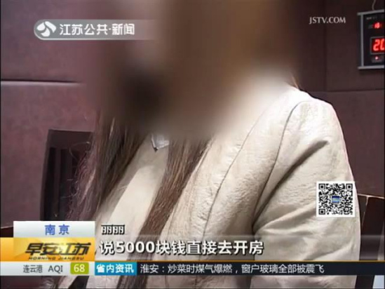 女子自稱叫麗麗,山東人,最近來南京旅游。無聊時在陌陌上認識了一名男子,男子稱5000元直接去開房,麗麗答應(yīng)了。