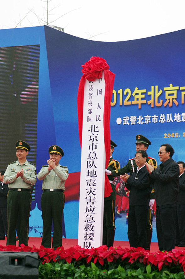 《人民武警報》報道(漆錫、邢佩偉)5月12日是我國第四個“防災(zāi)減災(zāi)日”。上午,武警北京地震災(zāi)害應(yīng)急救援隊成立儀式在京舉行。北京市市長郭金龍,武警部隊政委許耀元、參謀長牛志忠及北京總隊有關(guān)領(lǐng)導(dǎo)出席。