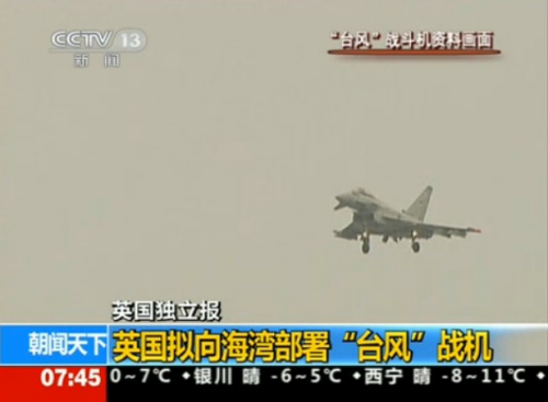 報(bào)道指出,英國(guó)考慮部署戰(zhàn)機(jī)的時(shí)機(jī)是,以色列威脅要對(duì)伊朗發(fā)動(dòng)軍事打擊,中東大部分地區(qū)處于“阿拉伯之春”以及敘沖突余波所帶來的動(dòng)蕩中。在這一動(dòng)蕩時(shí)期是否向海灣部署戰(zhàn)機(jī),這將由英國(guó)首相卡梅倫在同迪拜和阿聯(lián)酋深入交談后做出決定。預(yù)計(jì)在不久的將來將宣布相關(guān)決定。