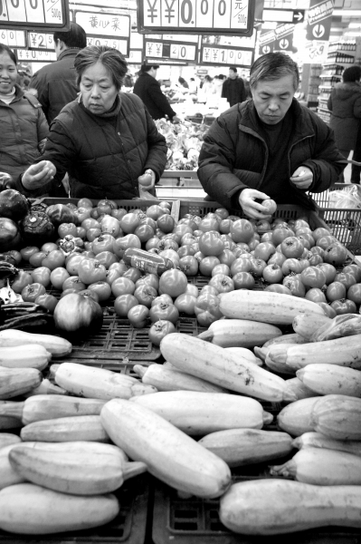 超市里,,人們?cè)谔暨x蔬菜人們?cè)谔暨x蔬菜記者記者王富曉王富曉攝攝