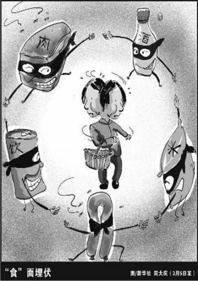 “早上喝一杯三聚氰胺牛奶,吃兩個(gè)染色饅頭,夾一截瘦肉精火腿,切一個(gè)蘇丹紅咸蛋;到中午了,買一條用避孕藥喂的魚……”這是網(wǎng)上流行的一個(gè)段子,雖然有些夸張,但也表現(xiàn)出網(wǎng)友對(duì)食品安全的憂慮。