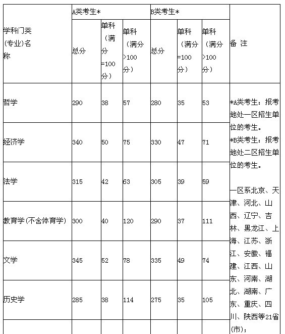2012年全國碩士研究生招生考試考生進(jìn)入復(fù)試的初試成績基本要求(學(xué)術(shù)型學(xué)位類)