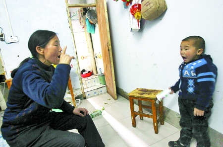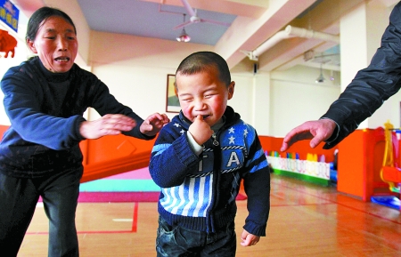 4歲的劉浩是個“小雨人”,媽媽在他生病后離家出走,奶奶沒有放棄。來鄭4個月的訓練小有成果,對著奶奶,小家伙已能清晰地喊出“媽”。首席記者陳曉東攝
