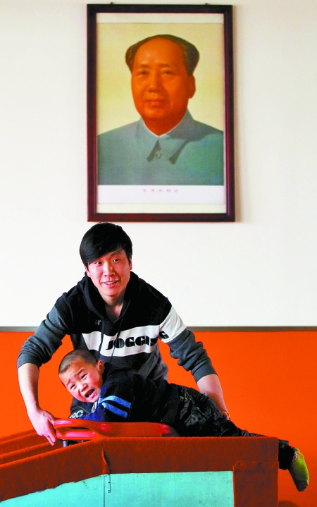 陪這些孩子進行體能訓練女老師受不了,因此康復中心里有許多“男阿姨”。