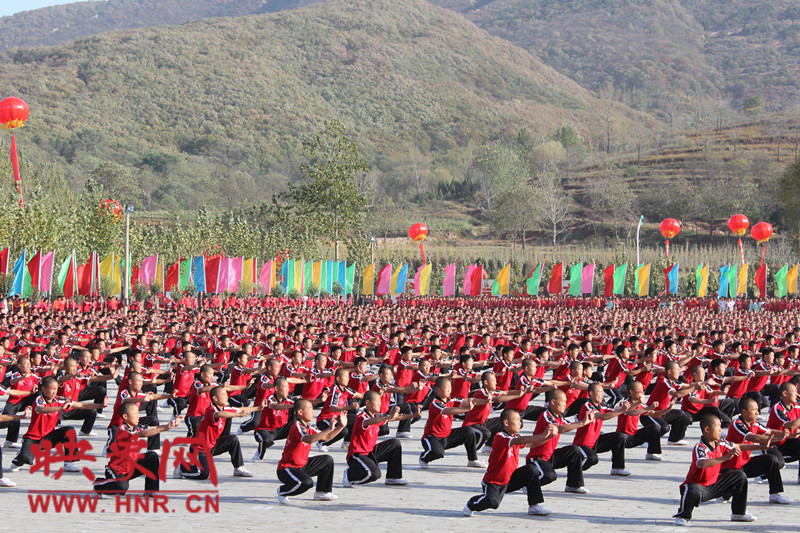 10月22日,少林寺塔溝武術學校的學員在第九屆中國鄭州國際武術節(jié)迎賓式上表演萬人團體武術。