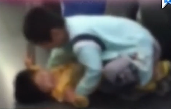 地鐵內小男孩按倒小女孩親嘴