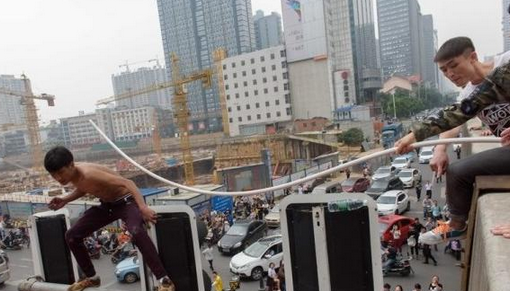 輕生男子爬紅綠燈被敲打墜下