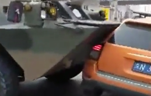 女司機駕車穿插軍車車隊 剮蹭裝甲車負全責