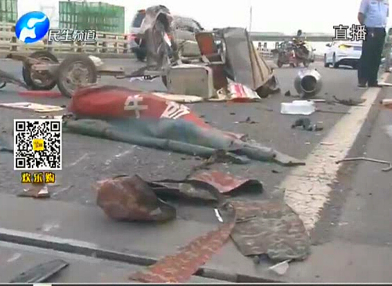 電動三輪車上高速被撞成碎片