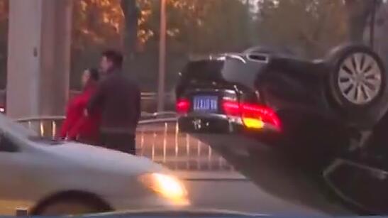 夫妻開(kāi)車吵架 車翻了個(gè)底朝天