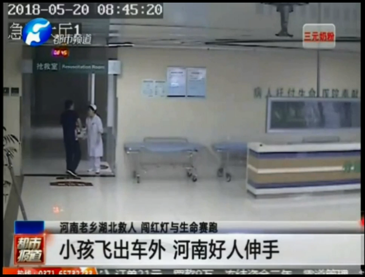 小孩飛出車外 河南好人伸手