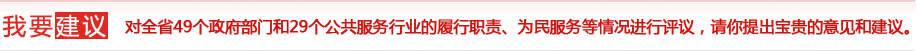 為貫徹落實黨中央、國務院關于加強作風建設的指示精神和省政府關于"兩轉(zhuǎn)兩提"的要求,努力建設服務政府、責任政府、法治政府和廉潔政府,進一步增強公共服務行業(yè)的服務意識,切實加強政風行風建設,省政府糾風辦繼續(xù)在全省各級政府部門和公共服務行業(yè)開展以"樹立優(yōu)良作風,構(gòu)建和諧中原"為主題的民主評議政風行風活動。河南省人民政府糾風辦委托映象網(wǎng)開通網(wǎng)上評議系統(tǒng),對全省49個政府部門和29個公共服務行業(yè)的履行職責、為民服務等情況進行評議,請你提出寶貴的意見和建議。