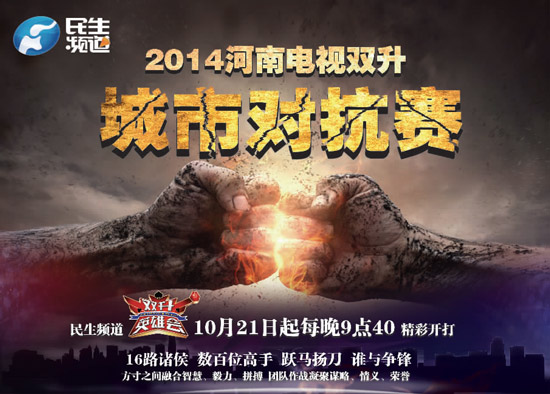 由河南電視臺民生頻道主辦的“2014河南省電視雙升城市對抗賽競賽”將于2014年10月21日拉開帷幕。