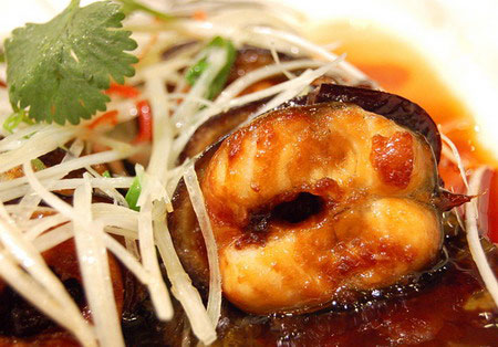 燒魚時(shí)有人喜歡把姜與魚一起下鍋,認(rèn)為這樣可去除魚腥。其實(shí)不然,過早放姜會(huì)使得魚體浸出蛋白質(zhì)阻礙生姜的去腥效果??梢韵劝阳~在鍋里煮一會(huì)兒,待蛋白質(zhì)凝固后再放姜;也可在爆鍋時(shí)烹入少量醋和料酒,起到去腥解膩增香的作用。如果還是覺著有腥味,出鍋前撒上點(diǎn)蒜末,效果非常好,特別是烹制長時(shí)間冰凍的魚。