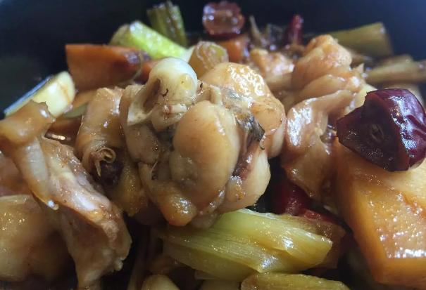 今天的烹飪大師陶洪民陶師傅教我們的兩步做牛蛙,第一步,備好砂鍋,放入配料與調(diào)料,拌勻。第二步,上火,中小火燜8分鐘。就這樣,就OK了。