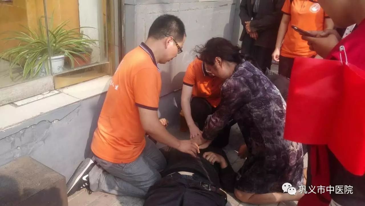 2017年9月17日上午9點(diǎn)25分,中醫(yī)院介入室護(hù)士長喬紅剛出中醫(yī)院大門口不遠(yuǎn),看到前方20米左右一老人身體搖晃,突然暈倒在地,同行的中年男子驚慌失措。