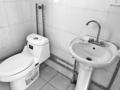 公租房內(nèi)衛(wèi)生間裝好了坐便器和洗手池。