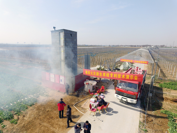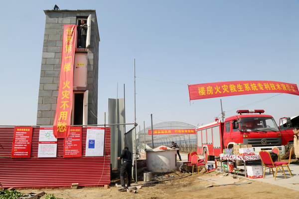 原來(lái),這是在進(jìn)行樓房火災(zāi)救生系統(tǒng)的現(xiàn)場(chǎng)演示。