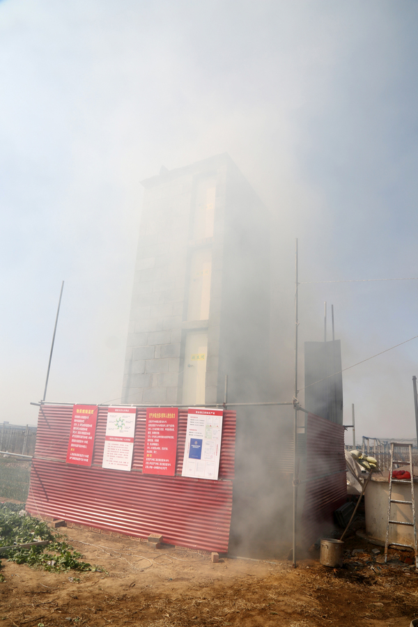 當(dāng)天11點(diǎn)10分左右,幾名工人將事先放在樓下和2樓的可燃物點(diǎn)燃,里邊有柴火、建筑垃圾、包裝盒、編織袋、布條等,很快外面煙霧彌漫。